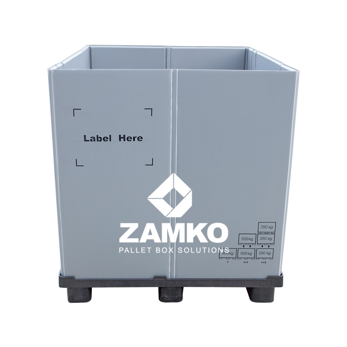 Sleevebox in 1000×1200 dimensions with loading window. Channelplate walls, combined with good stacking capacity. Alls rims are sealed for easy cleaning. Most economical choise!