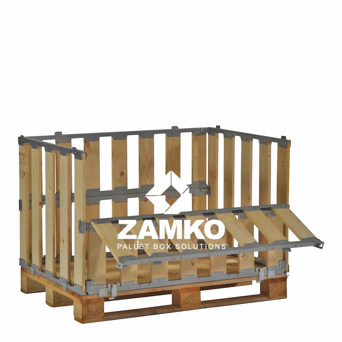 Pallet Box -4 detachable walls with 2 hinged gates on the long sides - Zamko B.V.